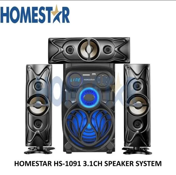 Enhance your home entertainment with the Homestar HS-1091. This 3.1 channel home theater system is designed to deliver powerful, immersive sound with deep bass and crystal-clear treble. Whether you're watching movies, listening to music, or playing games, the HS-1091 transforms your space into a dynamic sound environment.