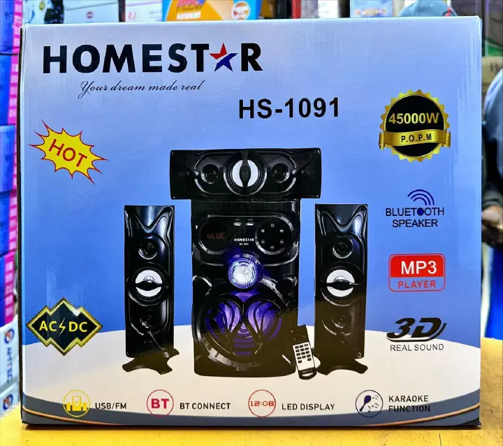 The Homestar HS-1091 is a stylish and powerful home theater system that delivers impressive sound performance, user-friendly features, and flexible connectivity—perfect for elevating your home audio experience.